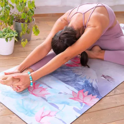 Gumowa mata do jogi Quality Suede z ultrachłonnym wierzchem z syntetycznego zamszu jest idealna do gorącej jogi i jogi Bikram.
